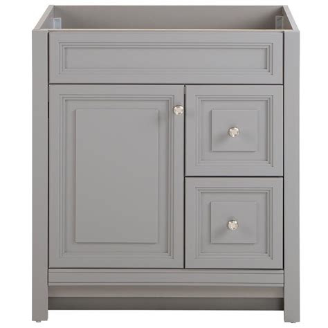 Once upon a time, in a far-off land called Home Depot, there stood a beautiful Brinkhill vanity cabinet. It was the perfect shade of gray, with elegant brushed nickel hardware and soft-close drawers. Oh, how it longed for a home to call its own!